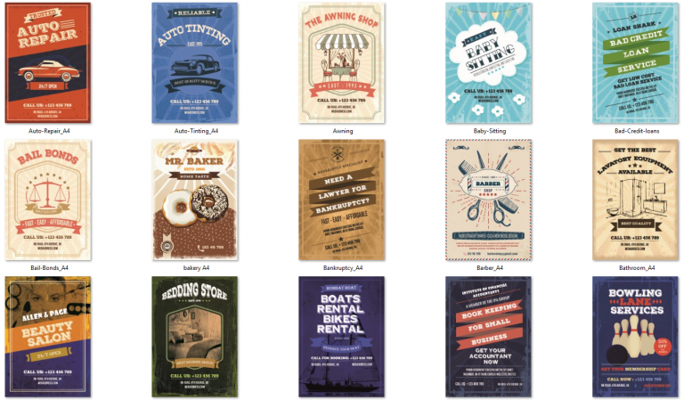 Eazy “Retro” Flyers is a huge bundle of pro quality local business flyer templates designed in a gorgeous
