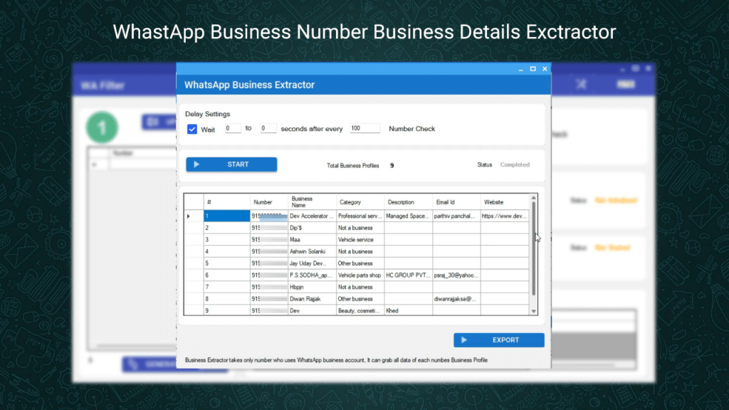 Introducing our powerful WhatsApp Number Filter + Bulk Business WhatsApp profile extractor – your ultimate solution for Windows-based number filtering and validation. This software is designed to run seamlessly on your PC and help you determine the WhatsApp availability of numbers with ease. Unleash the potential of this software with its standout features: